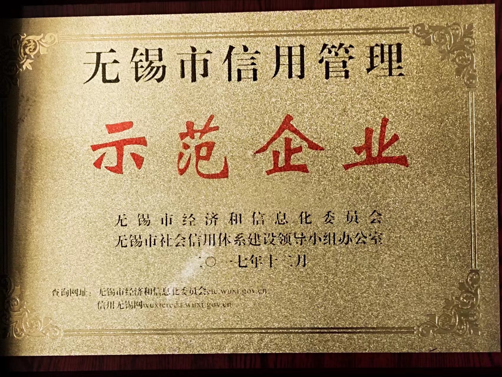 無錫市信用管理示范企業(yè)
