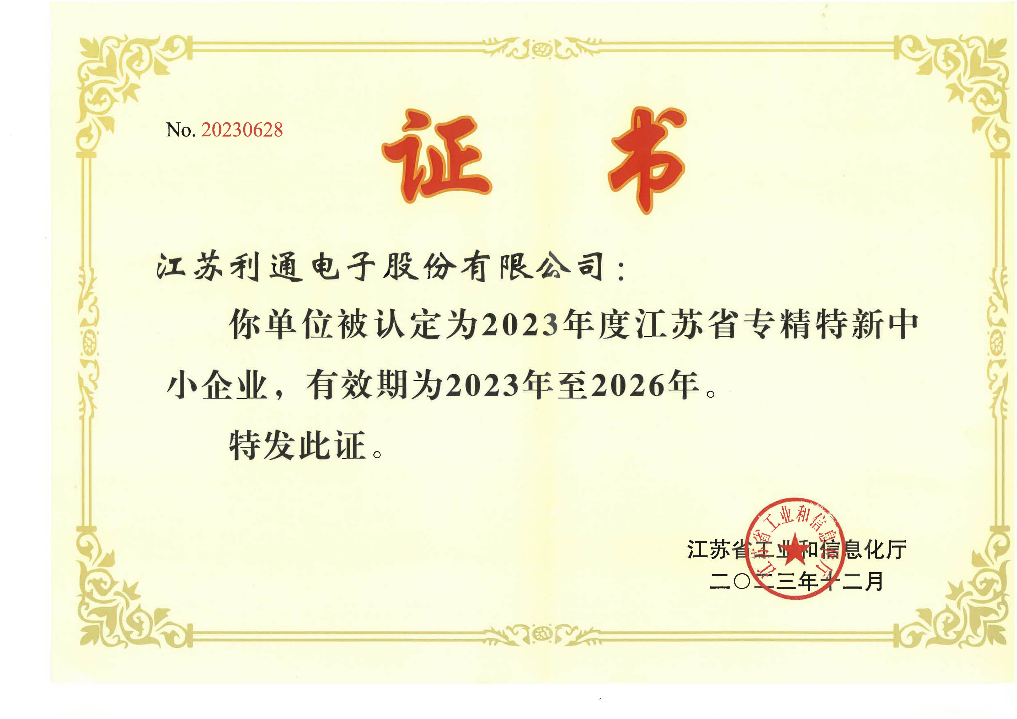 省級專精特新證書